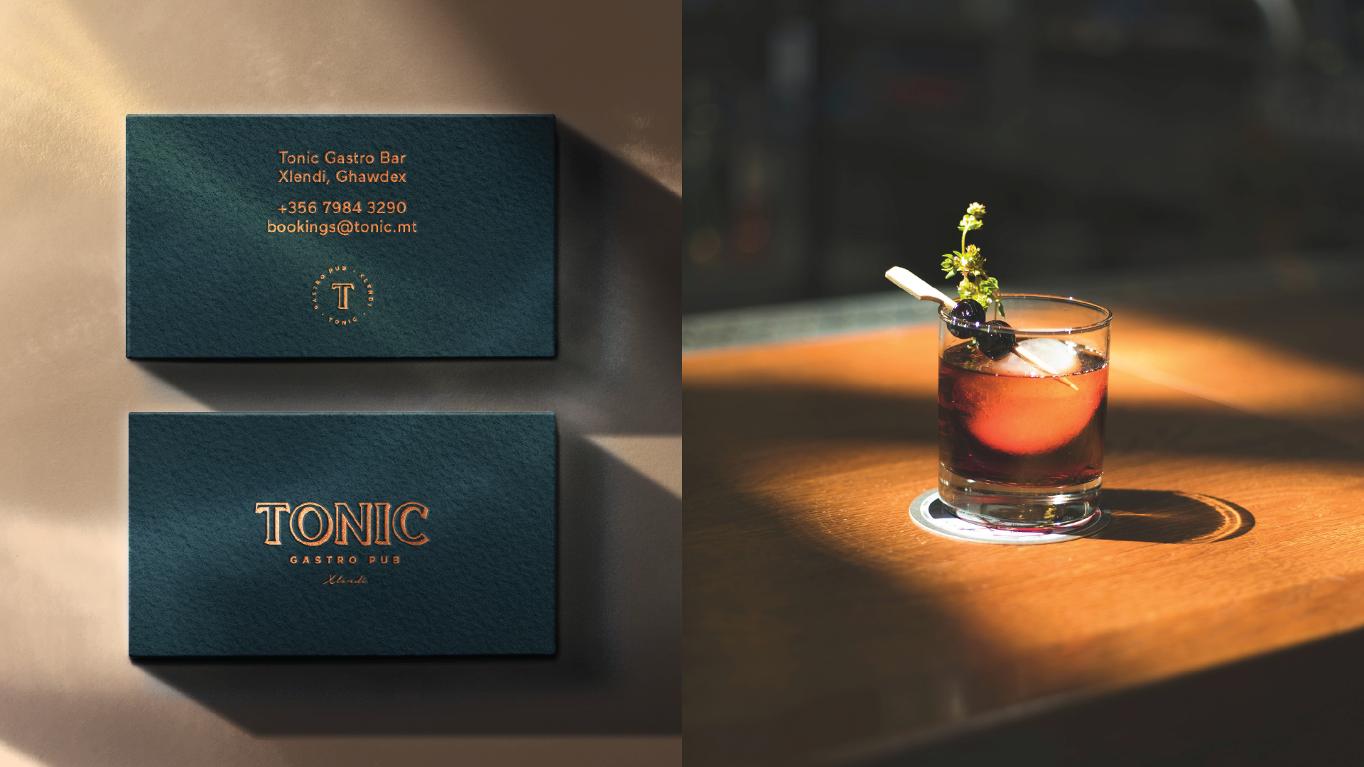 Tonic is a gastro-pub located in the island of Gozo. The brand captures the essence of the pub. A classic one, with a modern twist.
